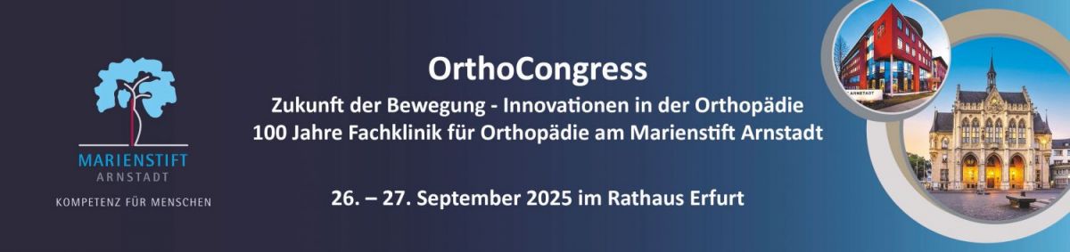 Die Fachklinik für Orthopädie am Marienstift Arnstadt wird 100 Jahre alt. Dies feiern wir am 26. und 27. September 2025 mit einem zweitägigen Fachkongress.