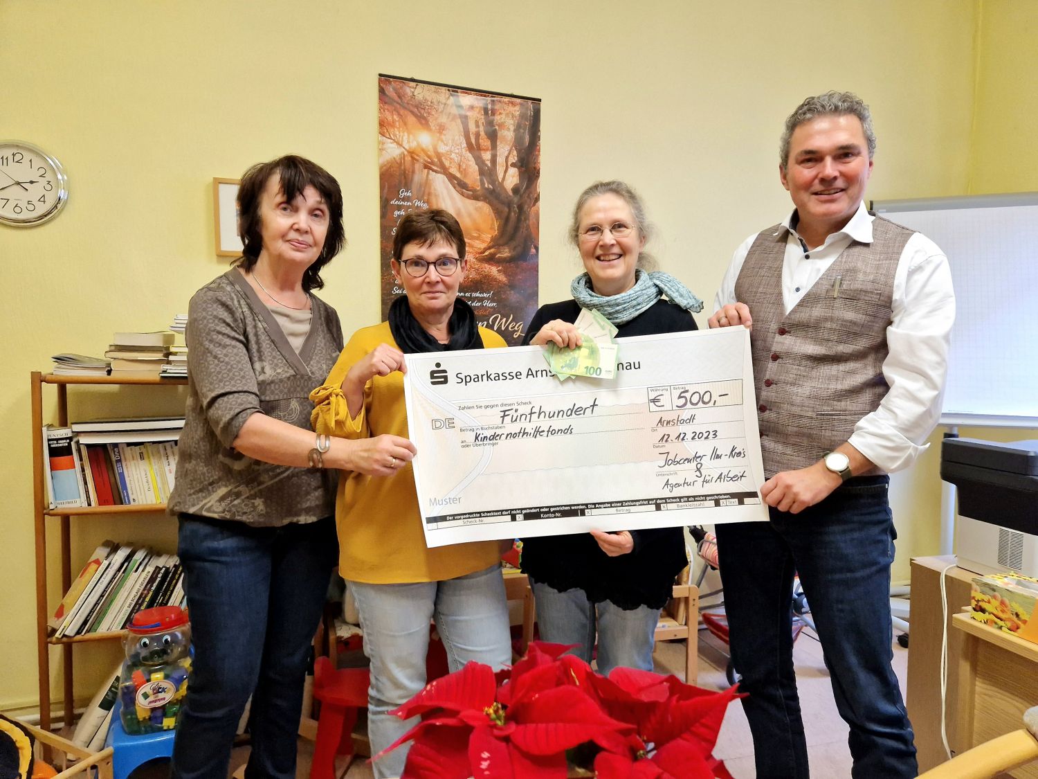 Ines Hellwig eine Spende über 500 Euro vorbei, die aus Spendenprojekten der Mitarbeitenden des Jobcenters im Ilmkreis stammt.