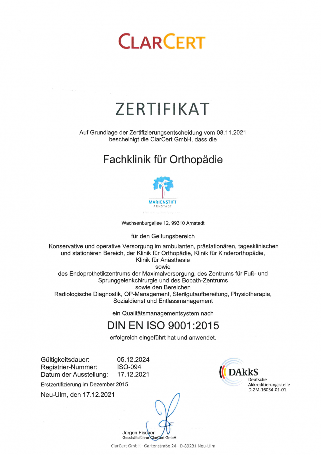 Das Marienstift Arnstadt verbindet in seiner Fachklinik für Orthopädie ein traditionsreiches Leistungsspektrum mit den hochmodernen Behandlungsmethoden eines überregionalen Kompetenzzentrums.