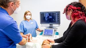 „Die Hüften sind mittlerweile ausgereift. Da können Sie ganz entspannt sein“, sagt Oberarzt Dr. med. Daniel Herz vom Marienstift Arnstadt nach der Sonografie von Baby Annas Hüften. Mutti Romy Elle ist froh: Nach einem auffälligen Befund hatte die Kinderärztin das Baby zur Kontrolle in die Kinderorthopädie überwiesen.