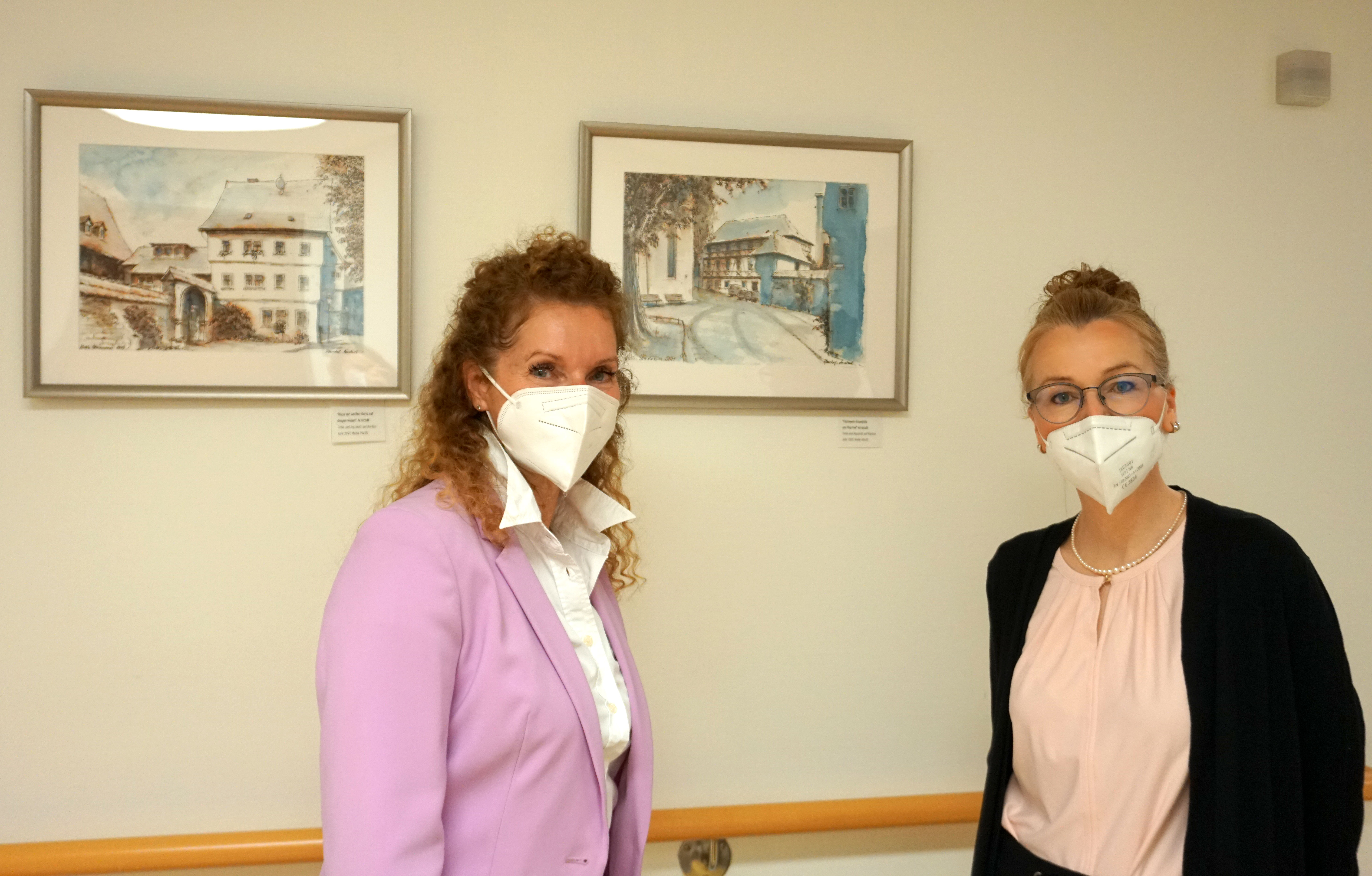 Im Beisein der Künstlerin sowie von Pflegekräften und Patient:innen konnten wir heute in der Fachklinik für Orthopädie des Marienstifts Arnstadt unsere neue Klinikgalerie eröffnen. Die Arnstädter Künstlerin Kirstin Heinemann zeigt auf Station 3 eine Aquarell-Serie mit Arnstädter Motiven, die nicht nur beim Personal sehr gut ankommt: