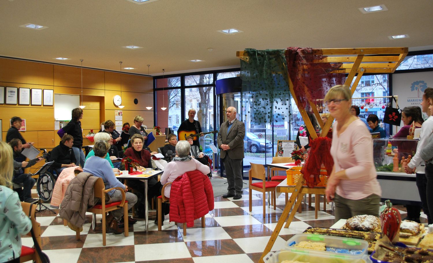 Höhepunkt des adventlichen Marktes war am 6. Dezember das Adventskaffeetrinken mit Andacht, besinnlichen Weihnachtslieder des Mitarbeiterchors weihnachtlich-beschwingten Klängen der Jonas-Singers (Wohnstätte Jonastal).