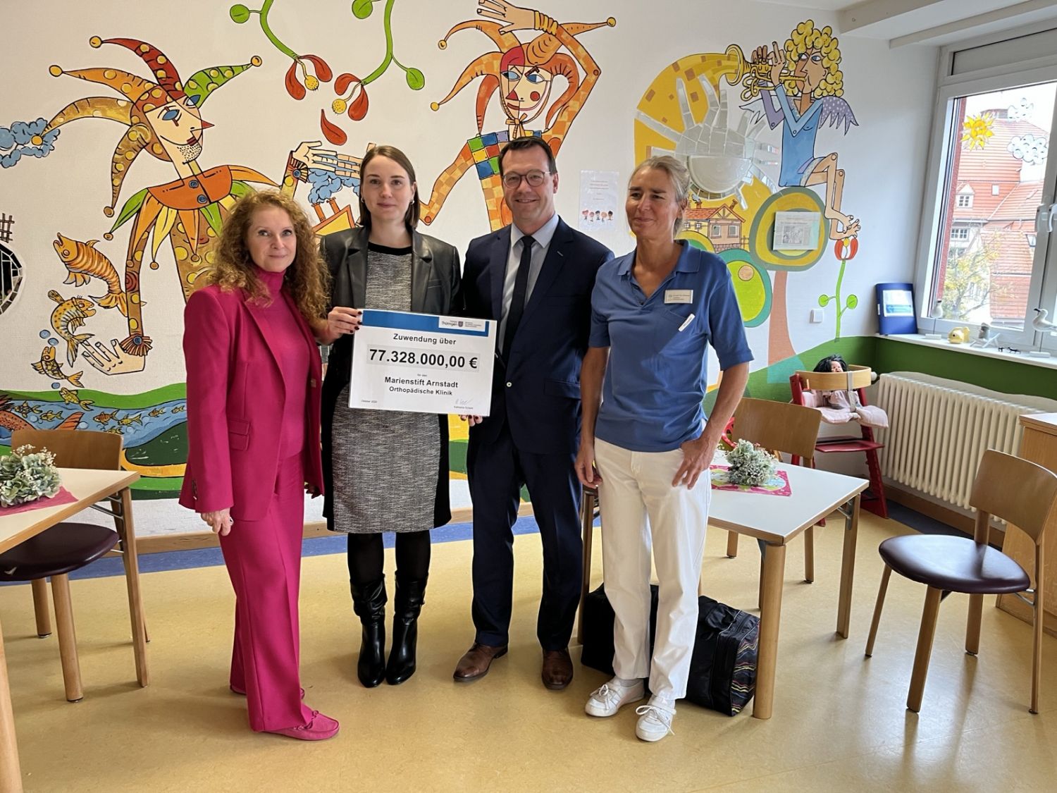 Ein glücklicher Tag für das Marienstift Arnstadt: Vergangenen Mittwoch besuchte Thüringens Gesundheitsministerin Katharina Schenk die Fachklinik für Orthopädie. In ihrem Gepäck: ein Scheck über rund 77 Millionen Euro für den dringend benötigten Erweiterungsbau des hoch spezialisierten Hauses. OP, Stationen und Funktionsräume sollen verdoppelt und erneuert werden, um dem hohen Patientenaufkommen an der Fachklinik für Orthopädie entsprechen zu können.