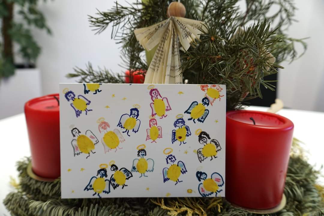 "Denn er hat seinen Engeln befohlen, dass sie Dich behüten auf allen Deinen Wegen." (Psalm 91,11) Unsere diesjährige Weihnachtskarte für alle Mitarbeiter sowie die Patienten, die Weihnachten in unserer Fachklinik verbringen, wurde von den Kindern unseres Friedrich-Behr-Hauses gestaltet: 1 Kind = 1 Fingerabdruck für einen Engel.
