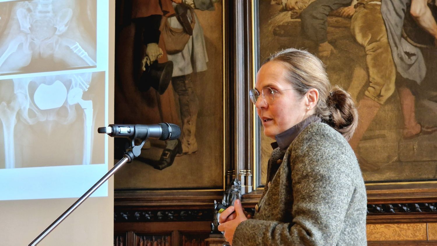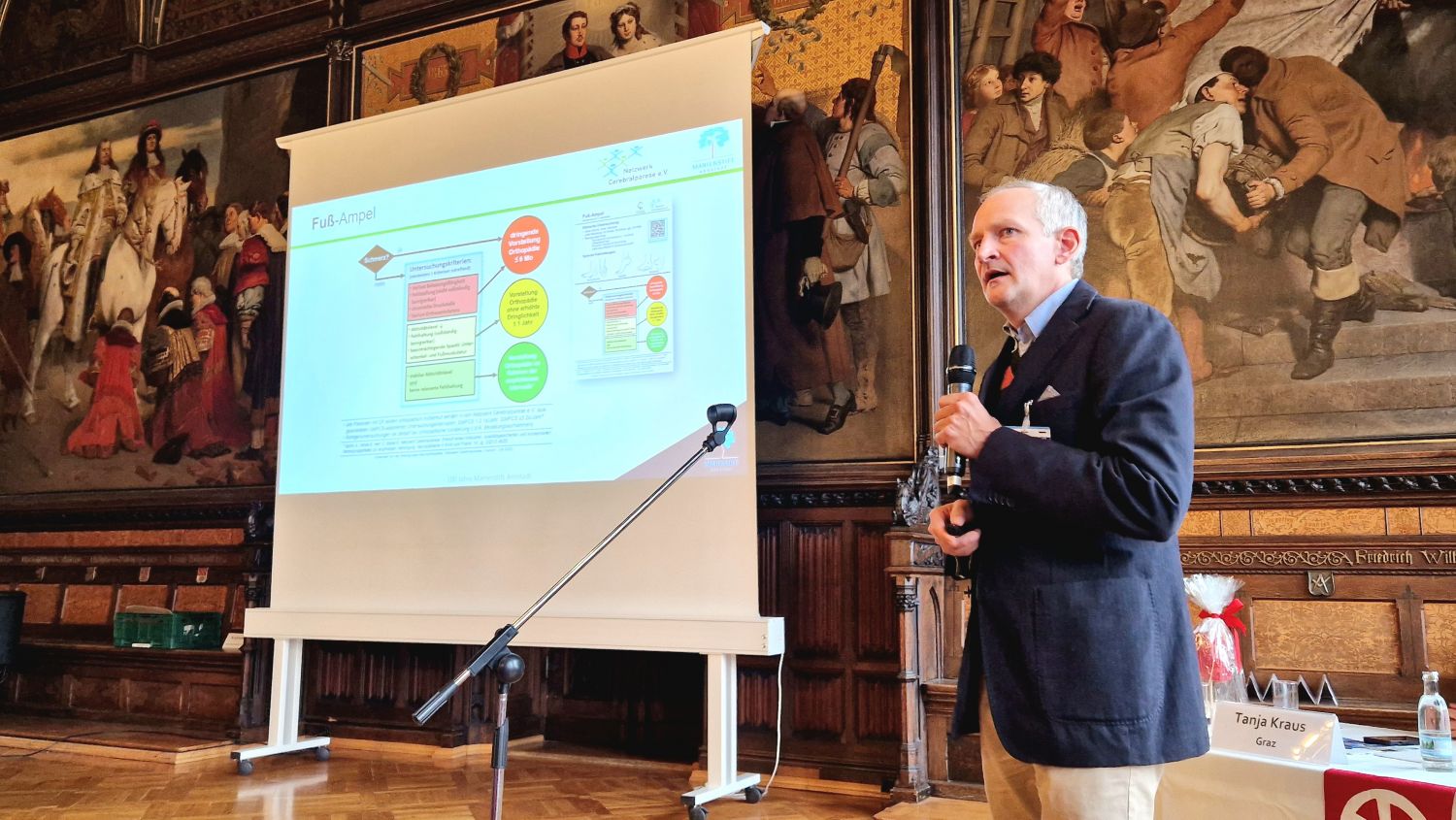 Internationale und nationale Referent:innen beleuchteten in Vorträgen und Diskussionen die neuesten Entwicklungen aus verschiedenen Teilgebieten – von der Endoprothetik über die Schulterchirurgie und Kinderorthopädie bis hin zur Fuß- und Rheumaorthopädie. Gleichzeitig wurden historische Meilensteine gewürdigt: Der ehemalige Chefarzt Prof. Dr. med. Ulrich Irlenbusch erinnerte an zahlreiche Dissertationen und Forschungsarbeiten aus der Klinik und freute sich, viele frühere Wegbegleiter:innen im Festsaal wiederzusehen.