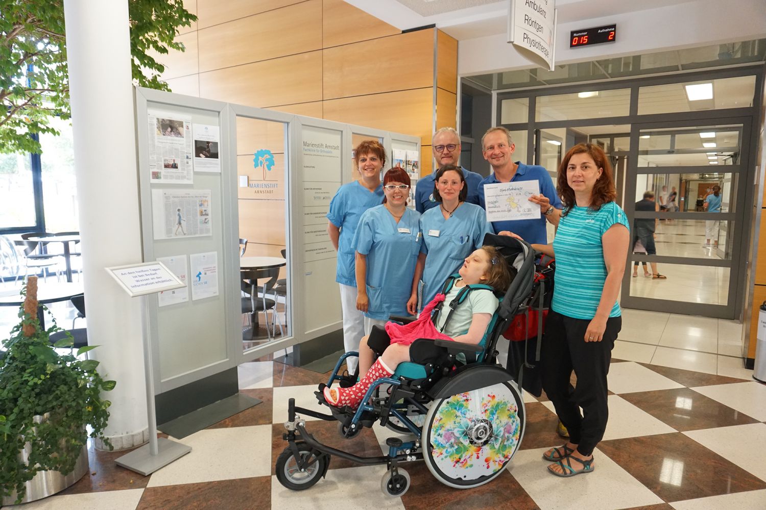 Was für ein netter Besuch! Kim Emma und ihre Mutter Nicole Heidrich vom Ilm-Flöhe e.V. schauten neulich in der Fachklinik für Orthopädie mit einem Spendenscheck vorbei. Diesen überreichten sie dem Freundeskreis Kinderorthopädie Herzblatt e.V., der mit seinem Einsatz die Belange der Kinderorthopädie vielfältig unterstützt. Die 300-Euro-Spende stammt aus dem letzten Kinderkleiderflohmarkt, mit dessen Erlösen die Ilm-Flöhe regelmäßig Projekte für Kinder unterstützen. Wir sagen Danke!