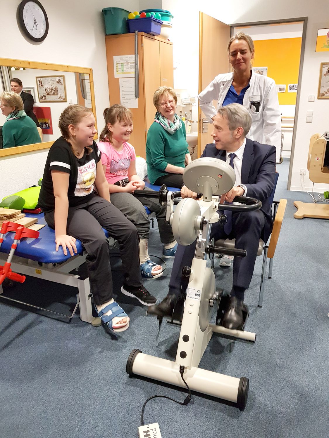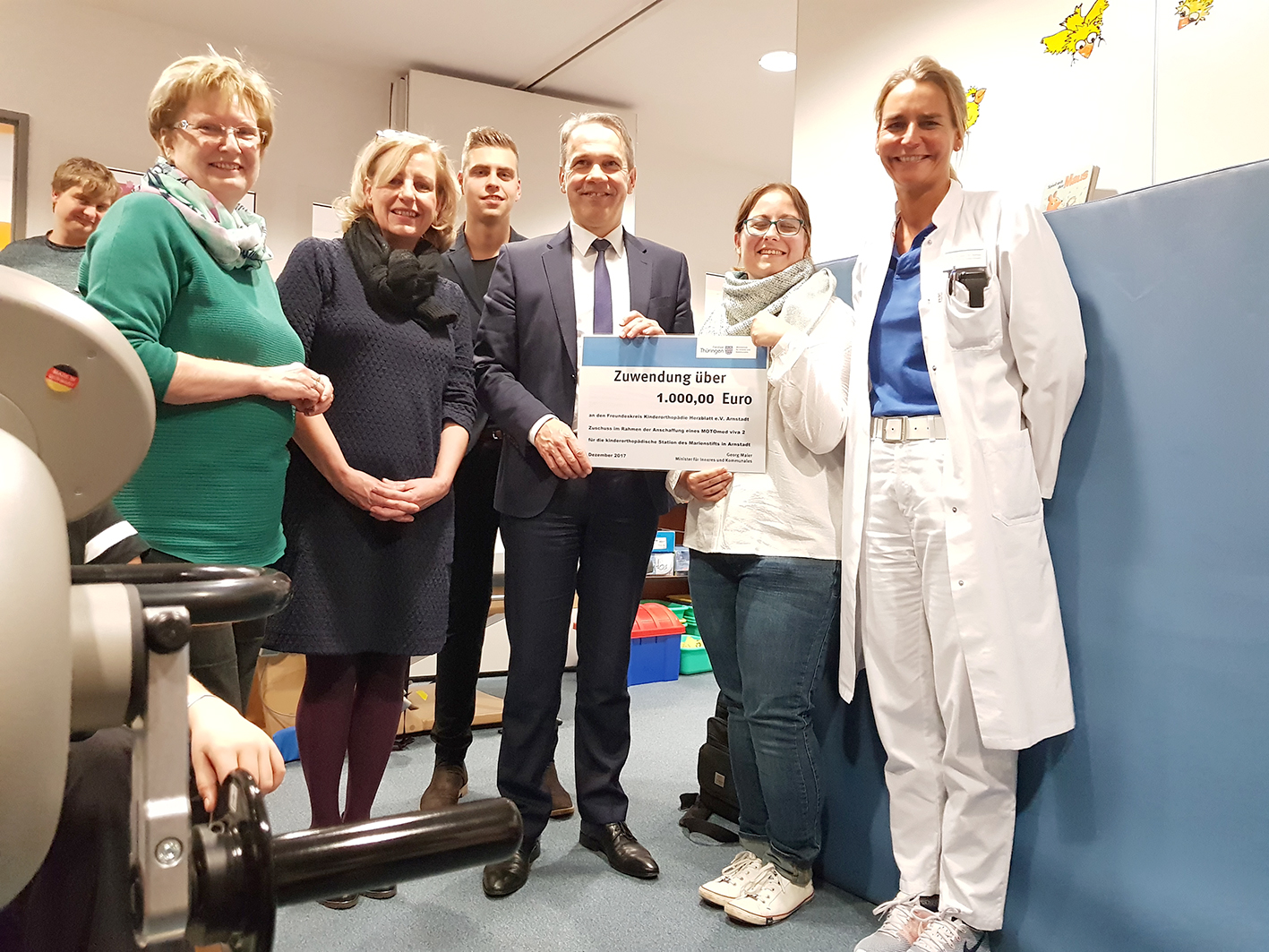 Innenminister Georg Maier besuchte am 9. Januar 2018 die Klinik für Kinderorthopädie des Marienstifts Arnstadt, um dort das Therapiegerät „MOTOmed“ offiziell zu übergeben.