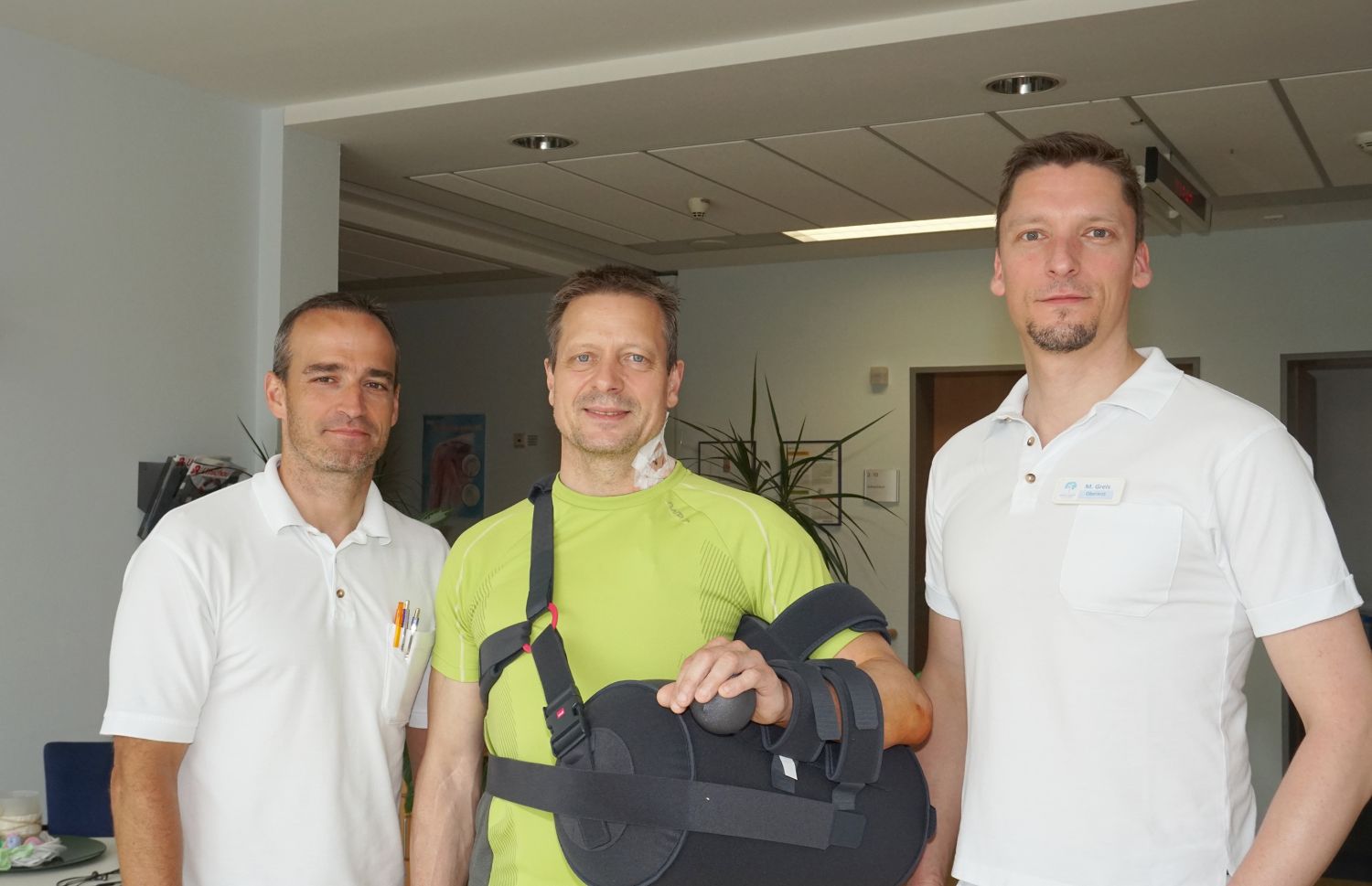 Jochen Pietzsch gönnt sich und seiner Schulter nun noch einige Tage lang stabile Ruhe auf einem speziellen Arm-Abspreiz-Kissen. Später steht auch für ihn eine intensive Rehabilitation an.