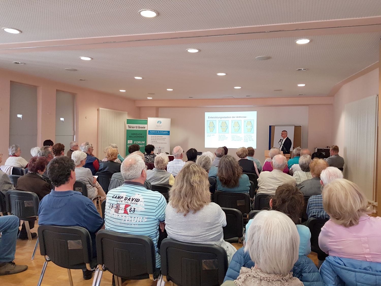 Arthrose gilt in Deutschland inzwischen als Volkskrankheit. Millionen Menschen verspüren Schmerzen durch Gelenkverschleiß, die nicht selten mit eingeschränkter Beweglichkeit und einem massiven Verlust an Lebensqualität einhergehen. Entsprechend groß war das Interesse der Zuhörer, die auch von der anschließenden Fragerunde reichlich Gebrauch machten.