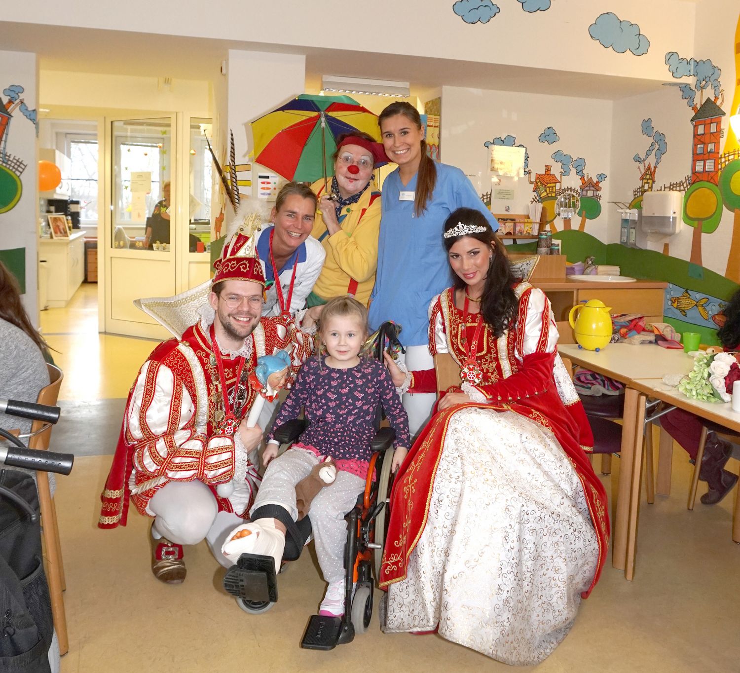 Auch Klinikclown Fietze war mit allerlei lustigen Spielen dabei, die nicht nur die Kinder, sondern auch Ihre närrischen Majestäten begeisterten. Zustandegekommen war der Besuch dank Vermittlung einer Schwester des Marienstifts: Sr. Toni Lea ist in dieser Saison Ordonanz der Prinzessin. Die kleine Nina war begeistert - und Chefärztin Dr. med. Christine Bollmann von der Kinderorthopädie bekam von dem närrischen Tross einen Orden.