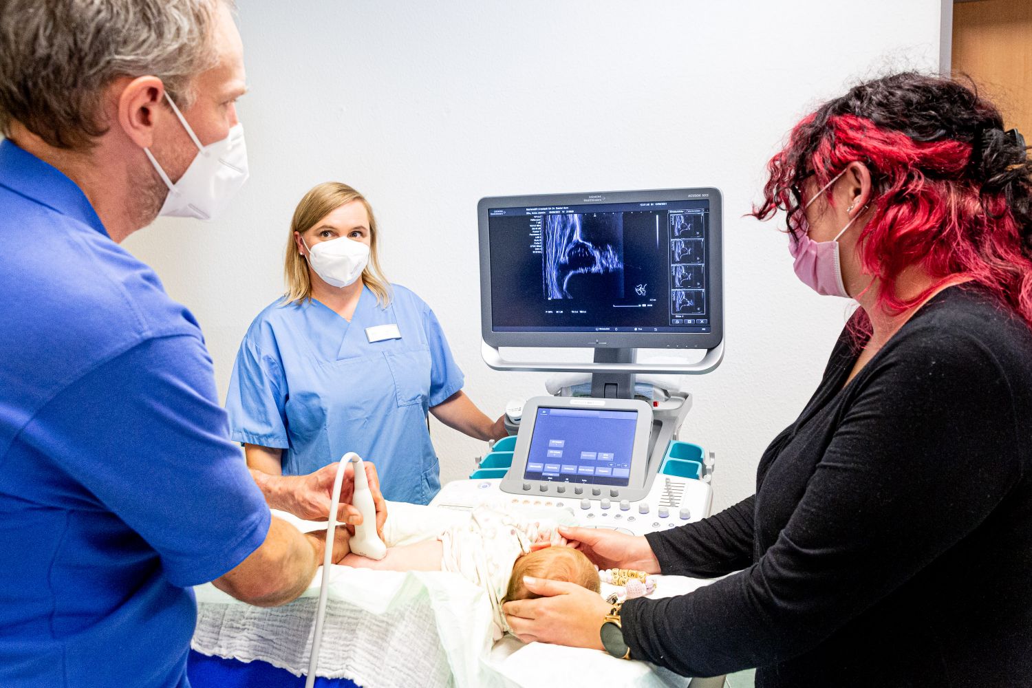 Viele Referenzuntersuchungen finden an der Fachklinik statt, wenn Befunde beim Kinderarzt oder schon beim ersten Ultraschall in der Geburtsklinik auffällig sind. Manche Kinder kommen aber auch zur Erstuntersuchung der Hüfte ins Marienstift.