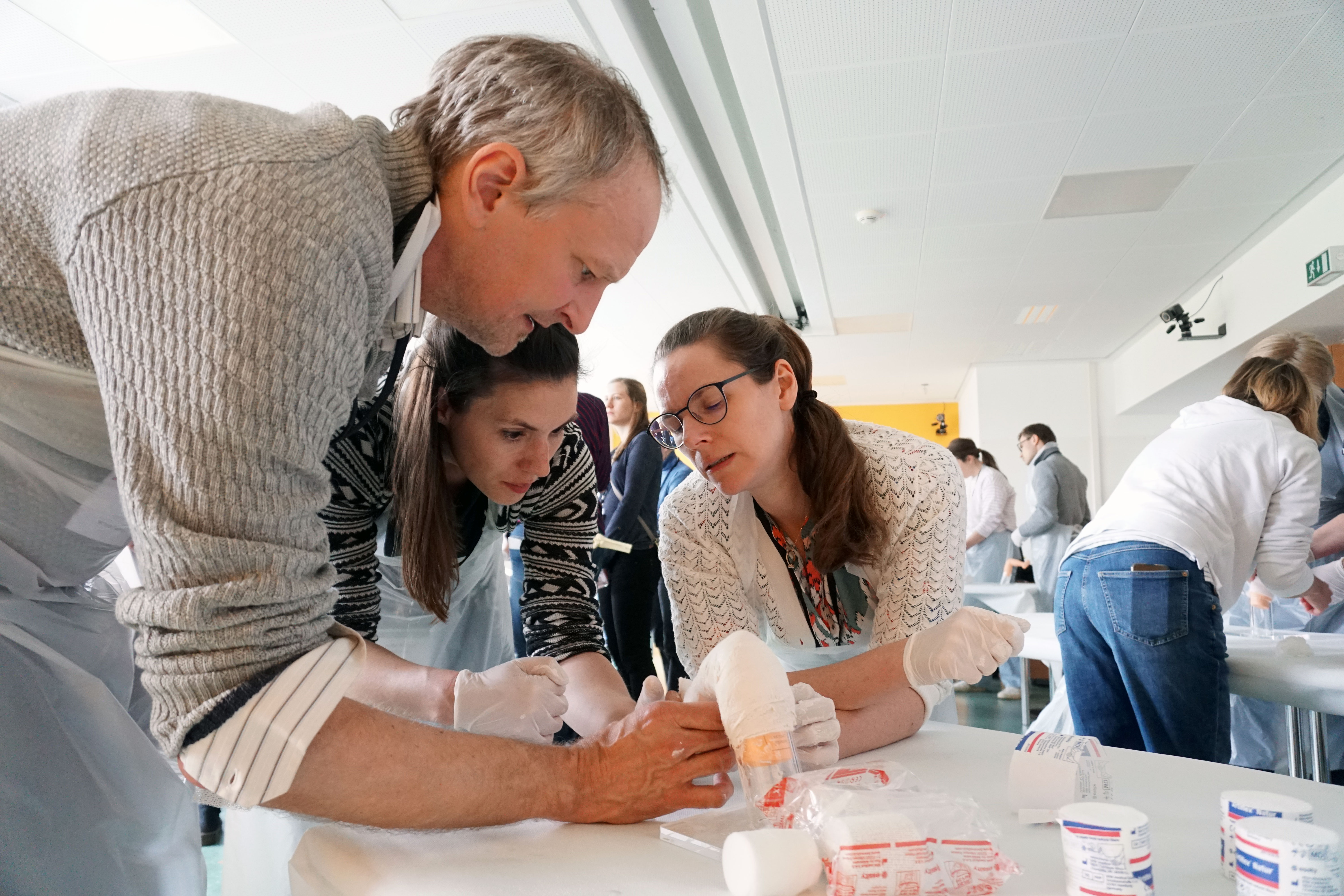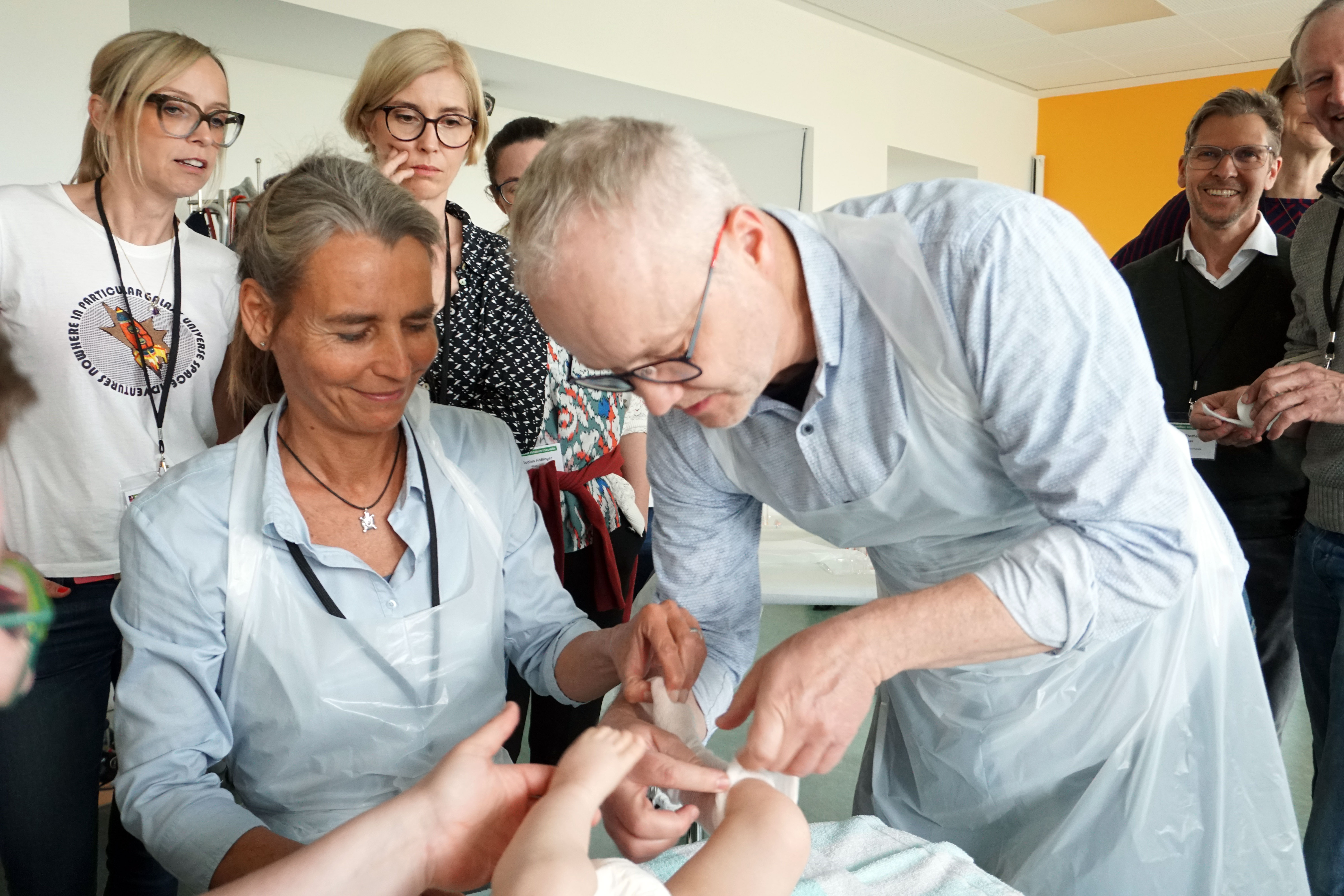 „In der Klumpfußtherapie hat durch die Ponseti-Methode in den letzten Jahrzehnten eine revolutionäre Veränderung der klassischen Gipsbehandlung stattgefunden“, erklärt Dr. med. Christine Bollmann. Eine Behandlungsmethode, die am Marienstift regelmäßig und mit großem Erfolg angewendet wird. Im Rahmen des Kurses ist entsprechend auch ein Workshop zu Grundtechniken des Gipsens nach Ponseti enthalten.