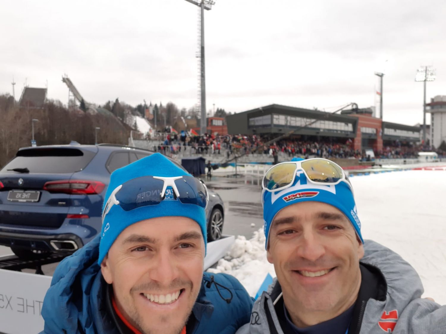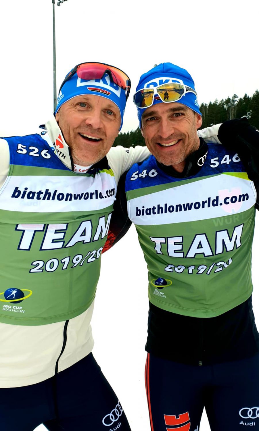 Wiedersehen in Minsk: Dr. med. Andreas Kindt (r.) mit Peter Sendel, Damentrainer und früherer Biathlon-Olympiasieger.