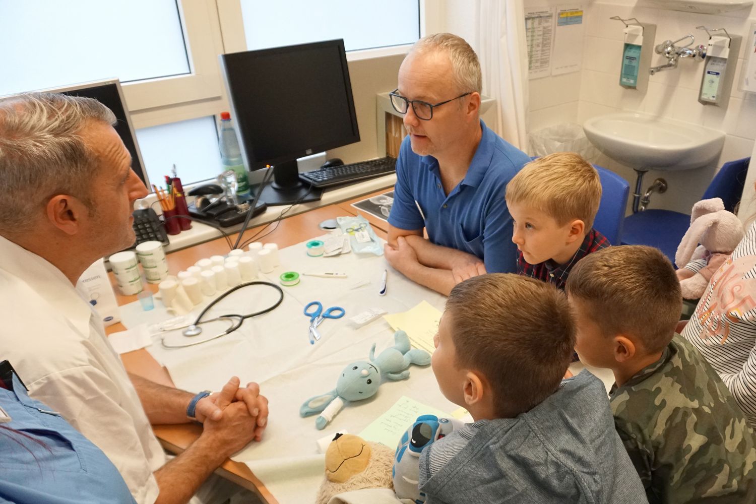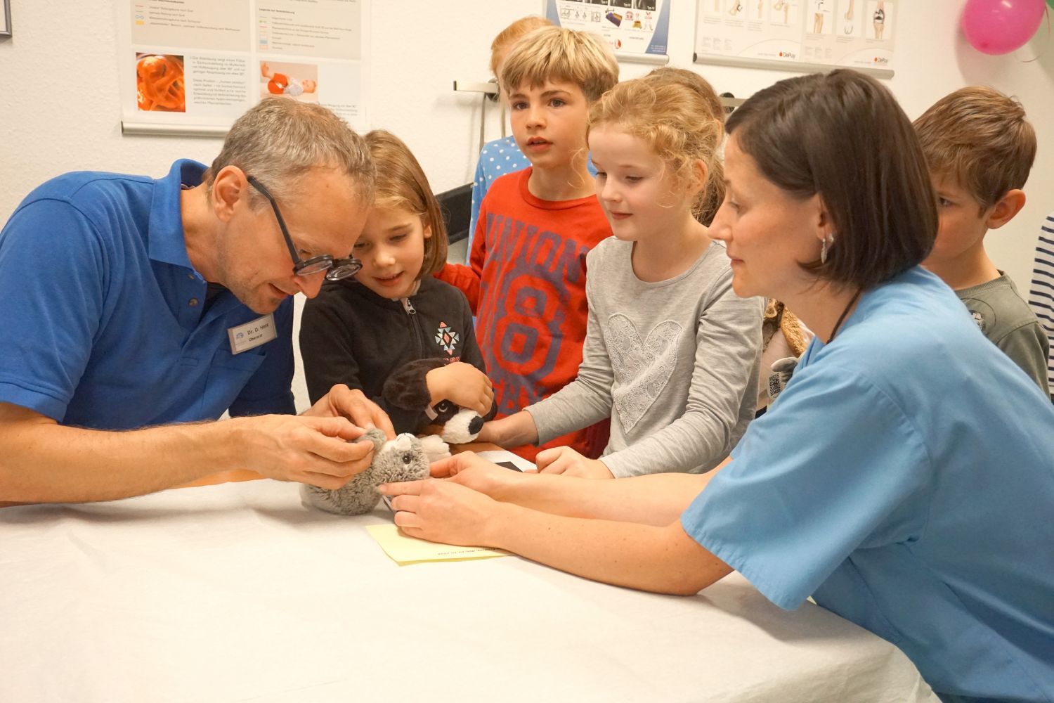"Ist Hippo gegen Tetanus geimpft", fragte Oberarzt Dr. med. Jens Raabe den jungen Besitzer eines verletzten Plüschnilpferdes. Während sein Kollege Dr. med. Daniel Herz einem soeben behandelten Kaninchen empfahl: "Bitte eine Woche lang nicht hüpfen!" Versteht sich, dass nicht nur die jungen Besucher diese besondere Visite genossen.
