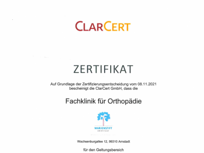 Als Team der Fachklinik für Orthopädie konnten wir auch 2023 eine sehr erfolgreiche DIN-ISO-Systemzertifizierung absolvieren. Ein Ergebnis aller Kollegen und Kolleginnen! Das Zertifikat von 2021 bleibt damit aufrecht erhalten.