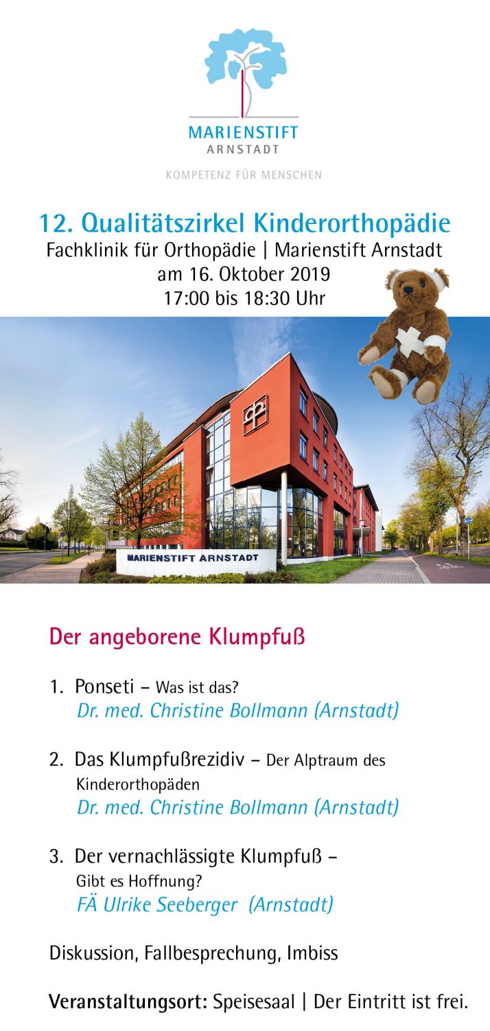 Der 12. Qualitätszirkel Kinderorthopädie im Marienstift Arnstadt behandelt das Thema: