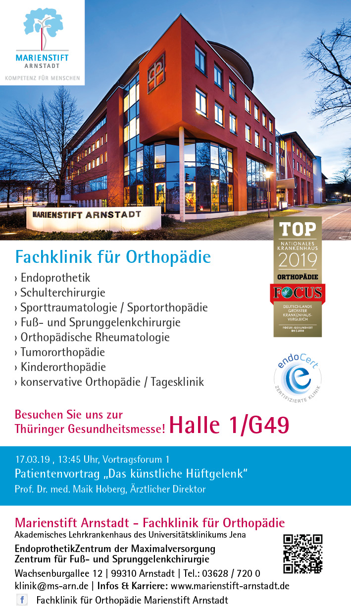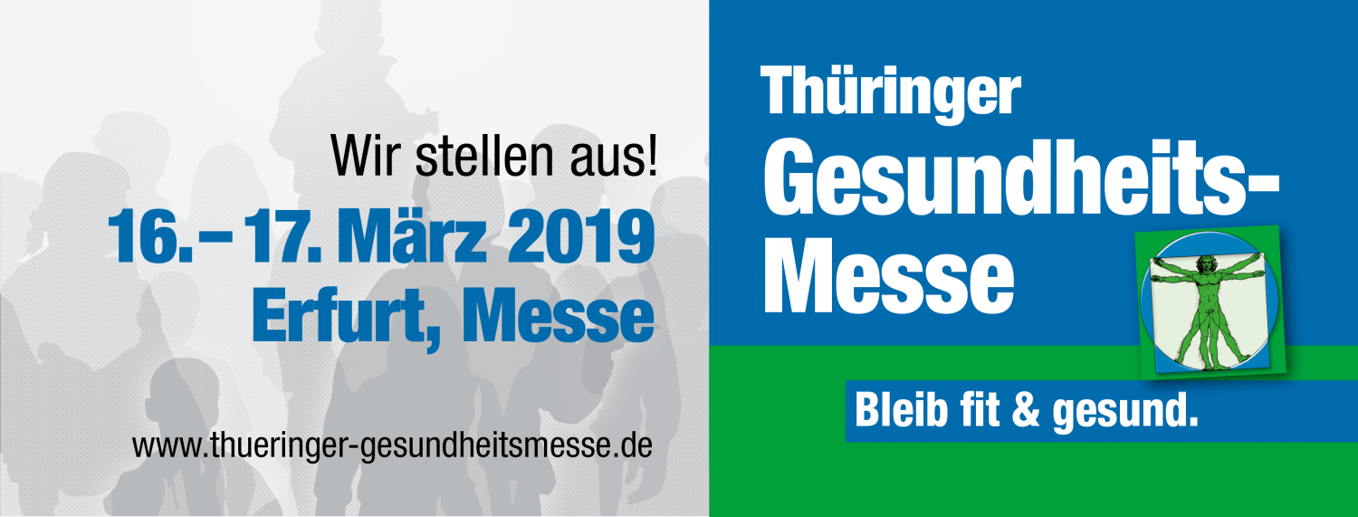 Besuchen Sie uns auf der Thüringer Gesundheitsmesse am 16. und 17. März 2019 in der Messe Erfurt. Sie finden uns in Halle 1 am Stand G 49.